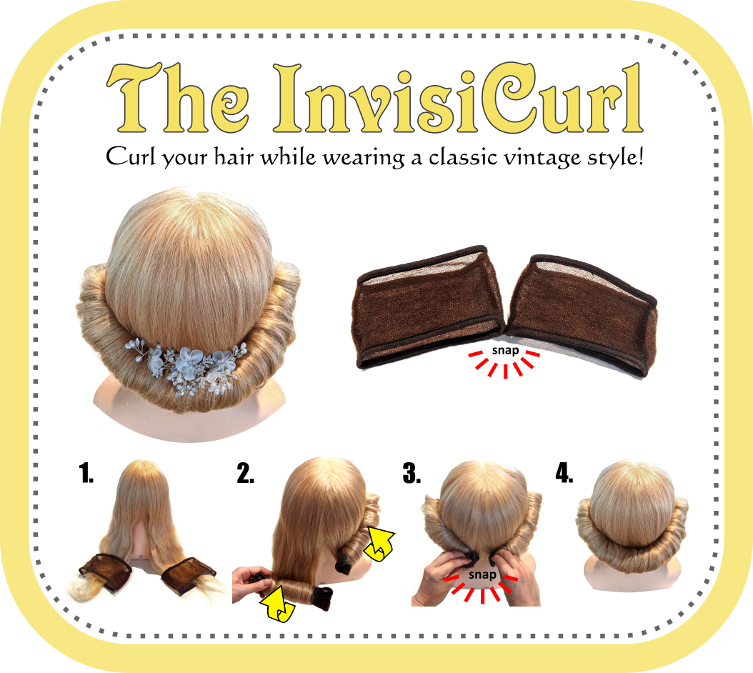 The InvisiCurl. Create this classic vintage hair roll in minutes. Simply pull your hair through the roller, roll up and pin! Left and right sides snap together at back of head to hold the style firmly all day long. Completely hidden while in the hair. Curls hair while you're wearing it. After wearing the up-do, remove the rollers and style your curls as desired. 2 styles in 1!